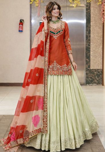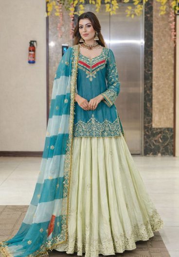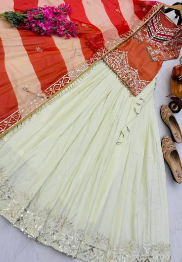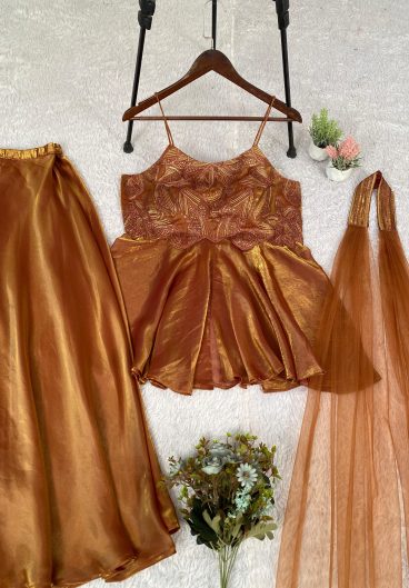 New Designer Party Fandy Silk Embroidery Sequence With Val Moti Lace Top Lehenga & Dupatta Set