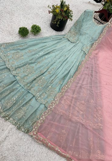 New Designer GMY SILK With Heavy Embroidery Sequence Work Top-Bottom And Dupatta