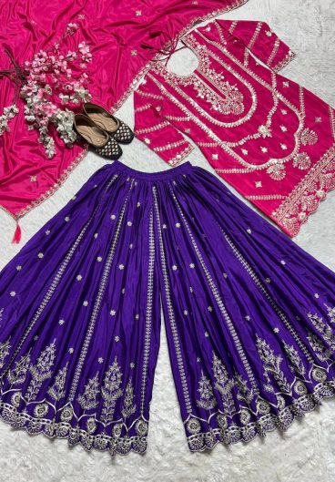 EXCLUSIVE AND TRENDY FOR WEDDING SEASON SEQUENCE EMBROIDERED TOP PLAZZO AND DUPATTA