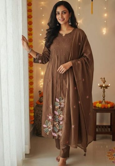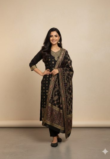 Premium Banarasi Chanderi Kurti Pant Dupatta Set