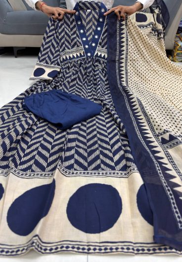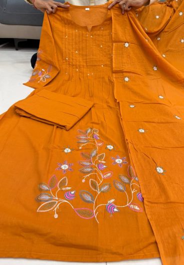 Beautiful Suit Sets in Pure Cotton 60 60 Suit Set Top pent with dupatta with Fully Handwork Neck