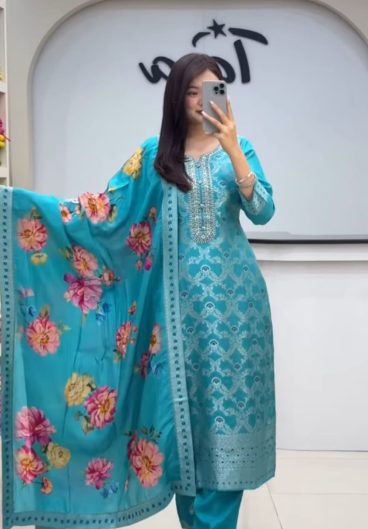 Heavy Silk With Embroidery Sequence & Digital Print Salwar Kameez