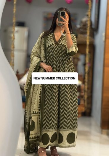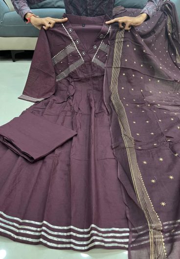 Beautiful Suit Sets in Pure Cotton 60 60 Suit Set Top pent with dupatta with Fully work Neck