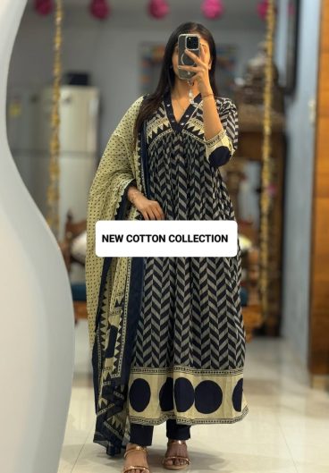 Heavy Cotton Print With Embroidery Sequence Work Salwar Kameez
