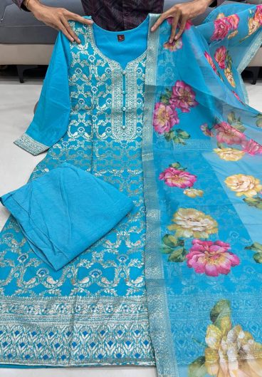 Pure Banarasi Top with maharaja silky Bottom & Dupatta Set