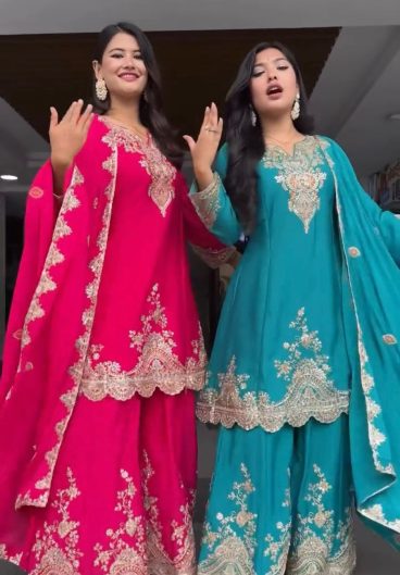 Heavy Chinon Silk with Comfortable Inner & Intricate Thread with Sequence work Salwar ka