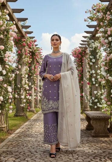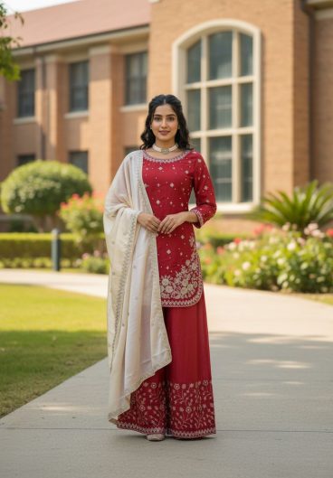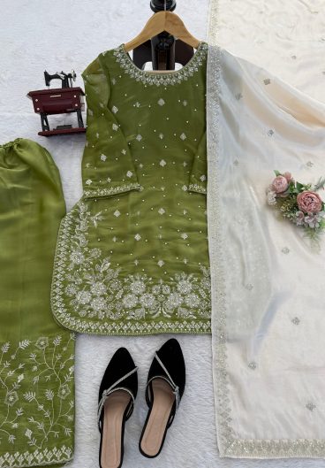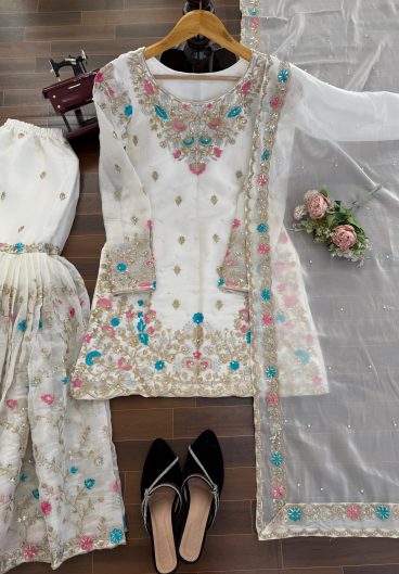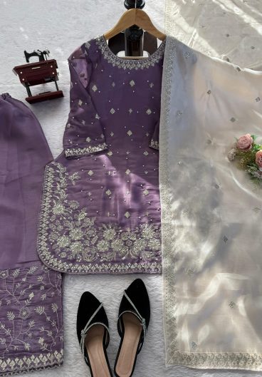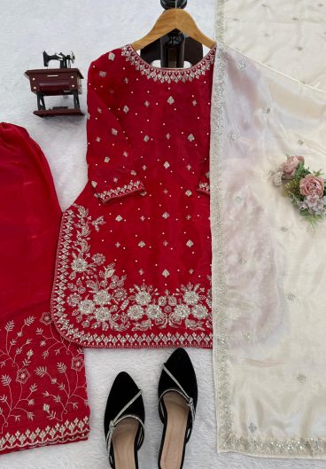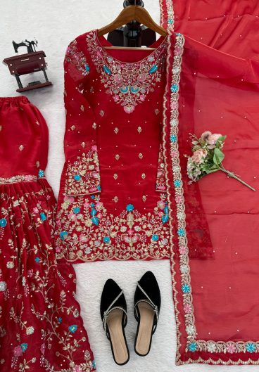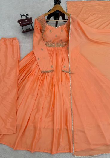 New Ready-made Fendy Silk And Heavy Embroidery Sequence Work Top-Bottom And Dupatta Set