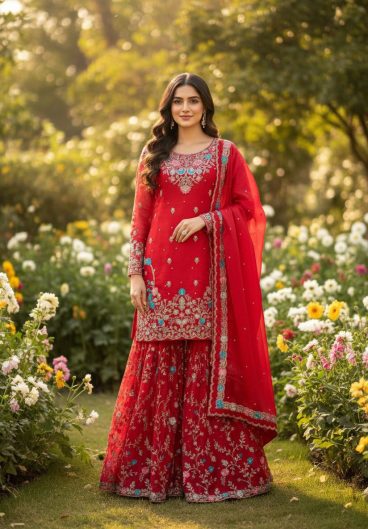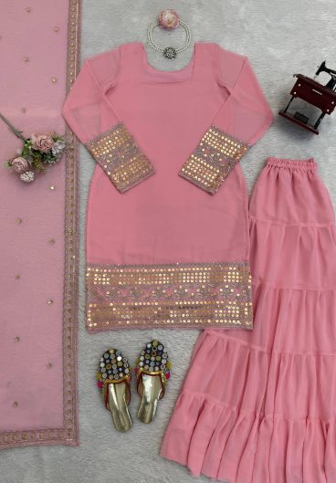 WEDDING SEASON 3 PIECE KURTI SARARA AND DUPATTA WITH SEQUENCE EMBROIDERY WORK