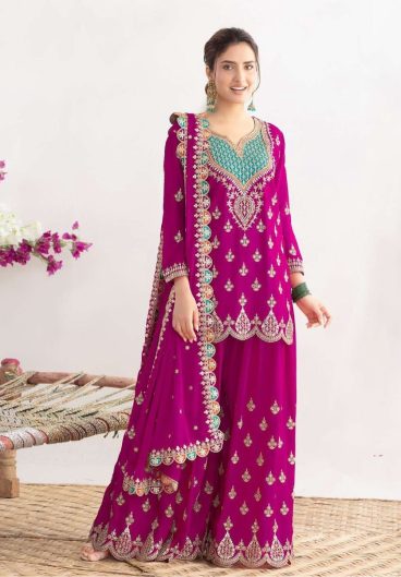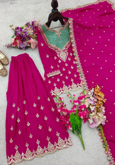New Designer Chinon Silk Party Sharara Suit & Dupatta Set