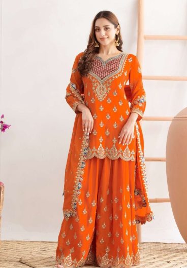 New Designer Pure Faux Georgette Top-Bottom And Dupatta Set Fully Stitched
