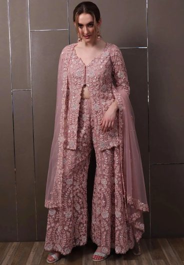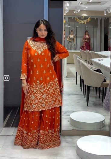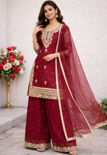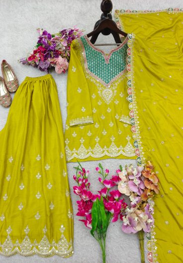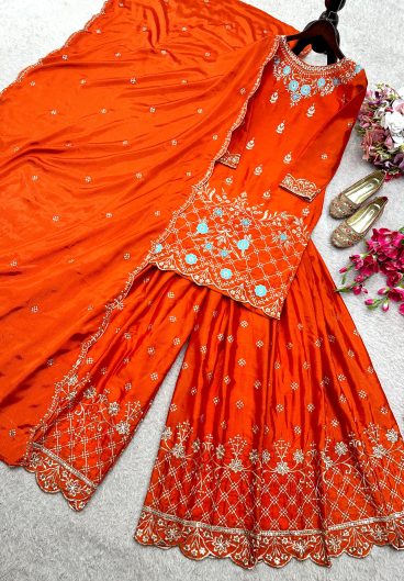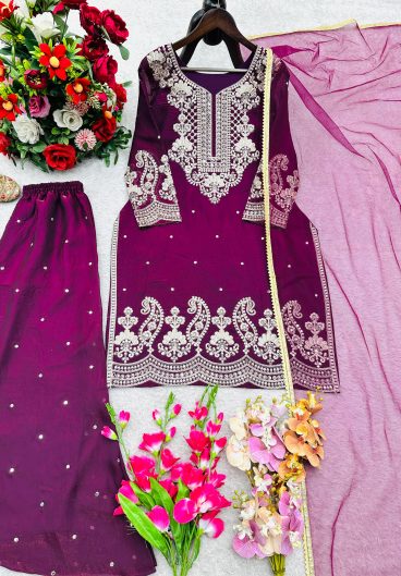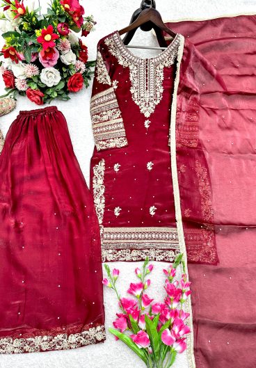 New Premium Quality With Embroidery Sequence Worked Top-Plazzo And Dupatta Set Fully Stitched