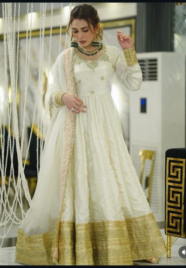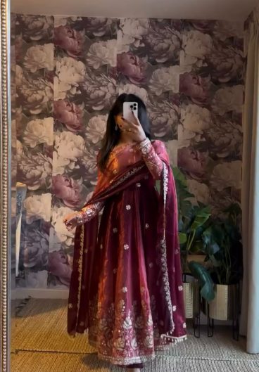 Roman silk Anarkali with codding sequence work