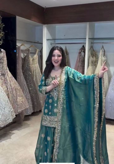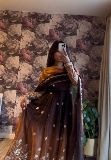 EXCLUSIVE 3 PIECE GOWN-PLAZZO AND DUPATTA PAIR WITH SEQUENCE EMBROIDERY WORK