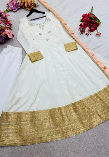 Pure Cp-Cinon Silk With Embroidery Coding Dori & 5mm Sequences Work Gown Pent dupatta set