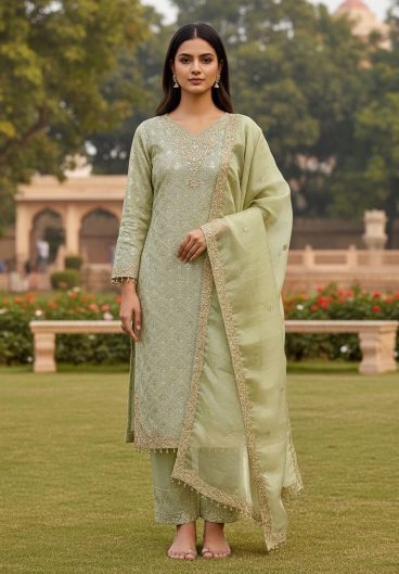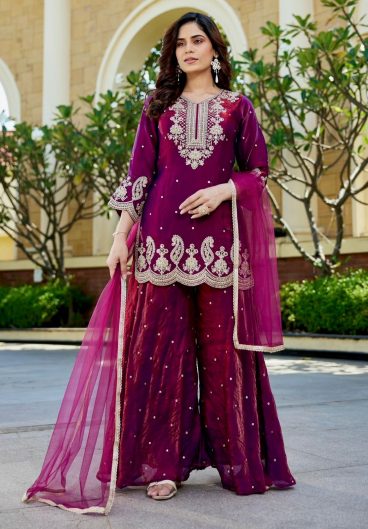 Pur Gmy Silk With Heavy Embroidery 3 mm Sequence Work Top Plazzo & Dupatta Set