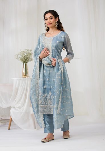 New Designer GMY SILK With Heavy Embroidery Sequence Work Top-Bottom And Dupatta Set