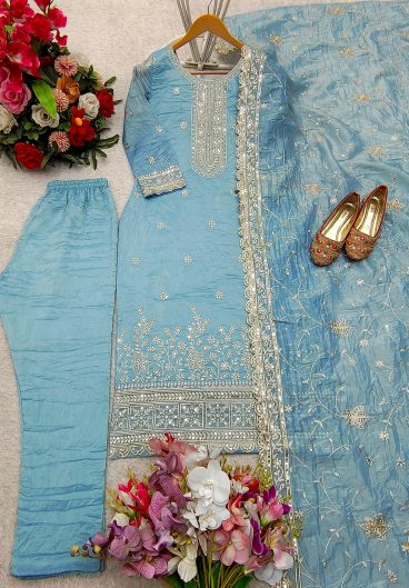 Chinon silk with Soft Micro Cotton Lining & Thread with Sequence work Salwar Kameez
