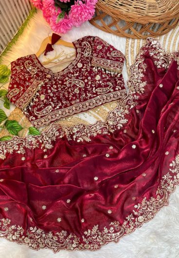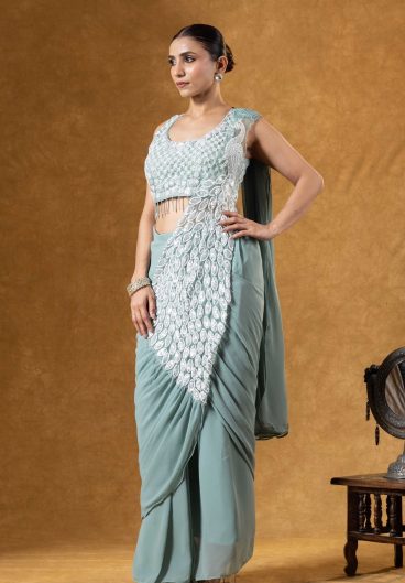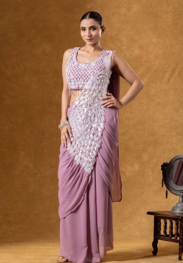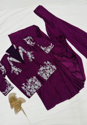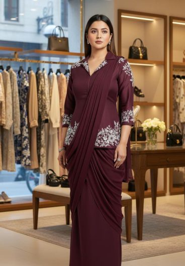 New Super Trending Embroidery cording work ready to wear Saree with full koti