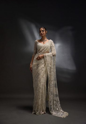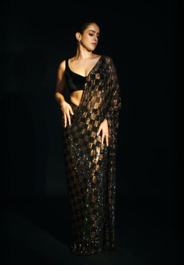 Heavy 3MM & 5MM Sequins Square Box Embroidery Work Beautiful Saree