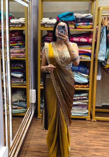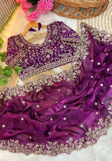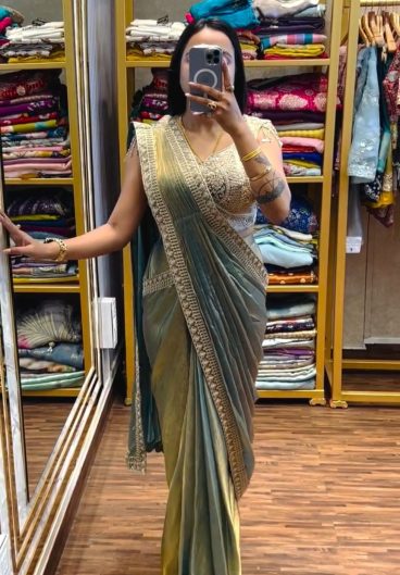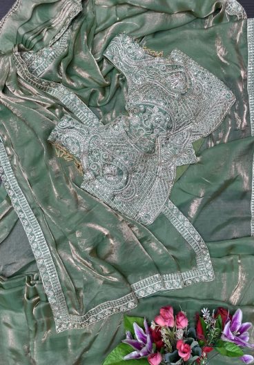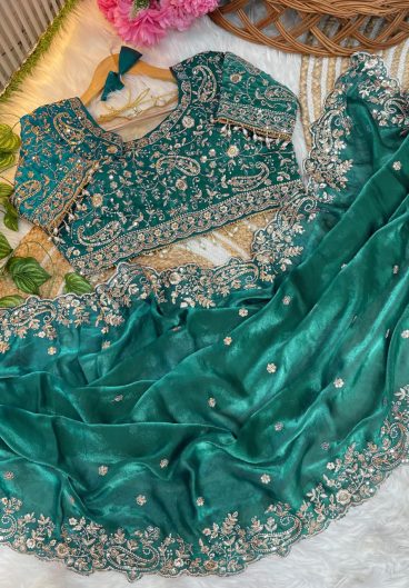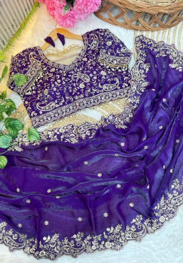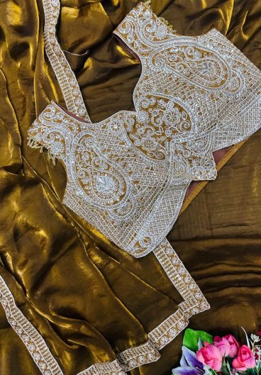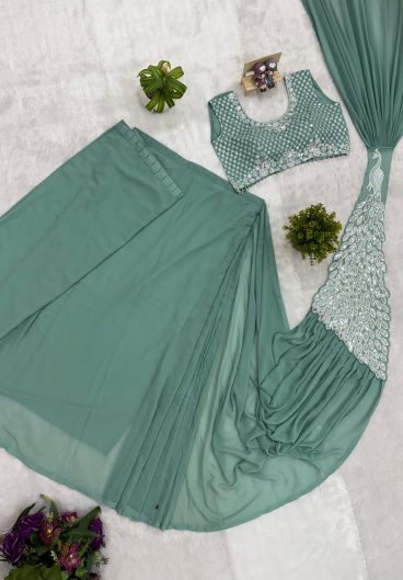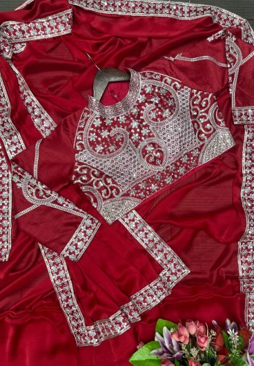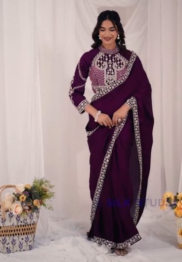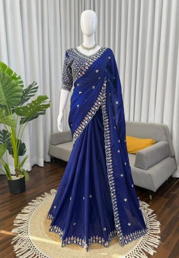 New Super Trending Embroidery Sequence work ready to wear Saree with Embroidery Blouse