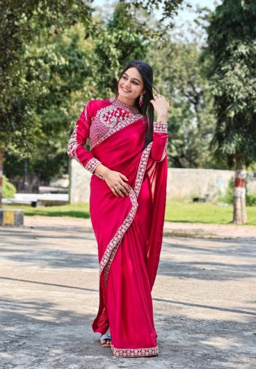 Fandy Satin Silk with Solid Plain Saree with Designer Embroidery work