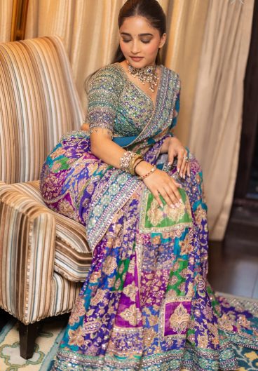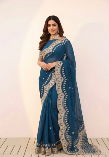 Premium Faux Georgette With Heavy Embroidery Codding Multi Treads & Sequins Work Saree