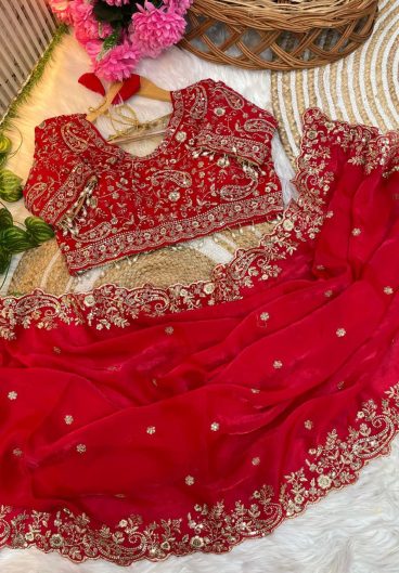 NEW SUPERHIT TRENDING READY TO WEAR SAREE WITH FULLY EMBROIDERED STYLIST BLOUSE ON FAUX GEORGETTE FABRIC