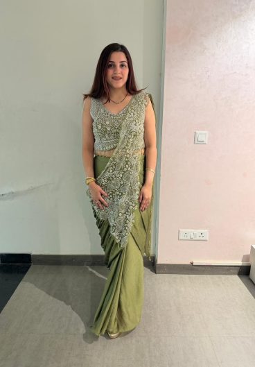 New Trending Premium Chinnon Silk Beautiful Drape Saree