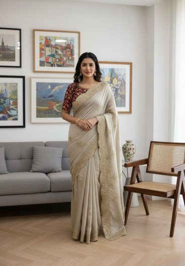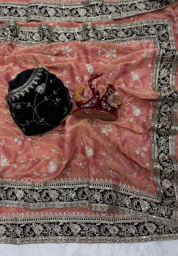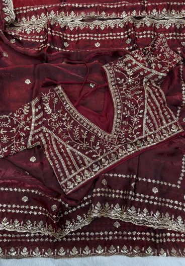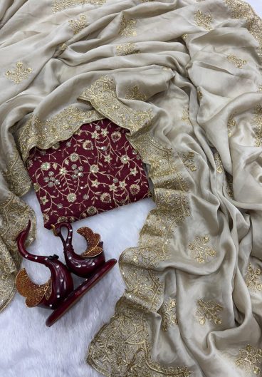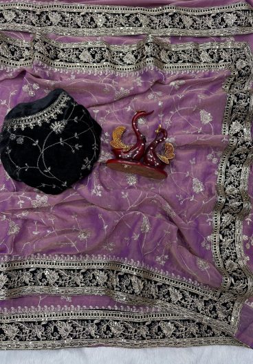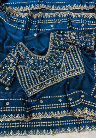 Soft Space Silk with Sequance and Zari Embroidery Work Saree & FULL STITCH BLOUSE