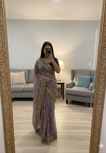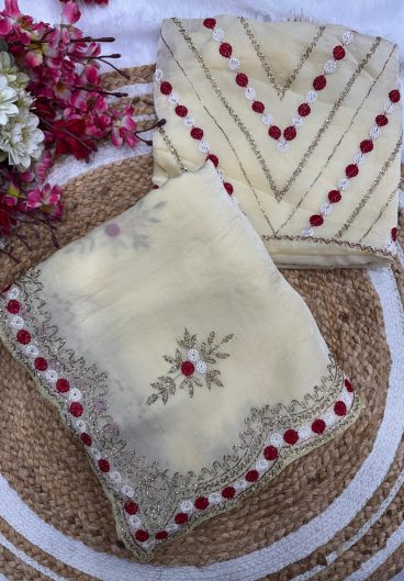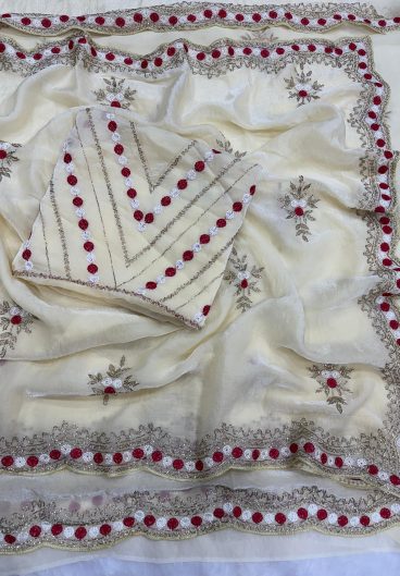 Soft Tebby organza With Multi white Tread Work and scalp Border Saree