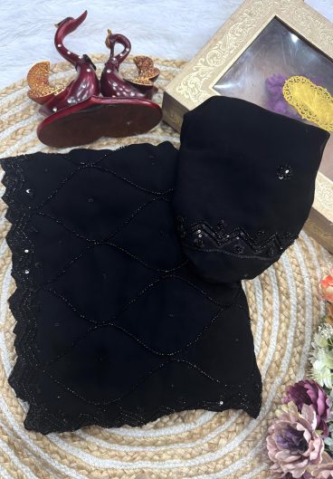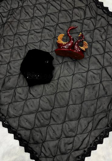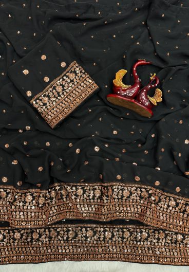 Pure Georgette with Beads Sequence Embroidery Work Black Saree