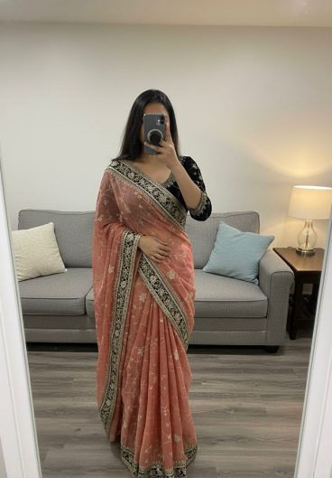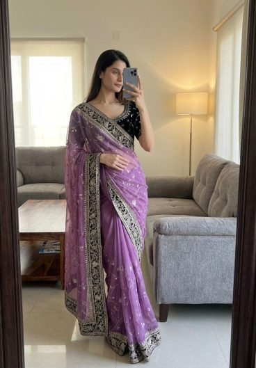 New Super Trending Embroidery Sequence work ready to wear saree with Embroidery Blouse