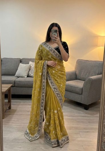 Heavy Soft Georgette with Beautiful sequins embroidery work Saree