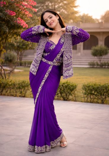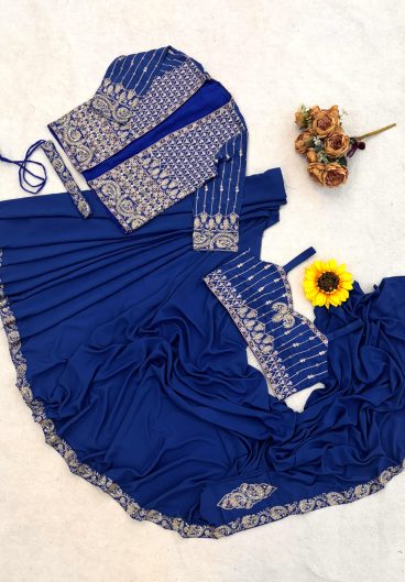 NEW SUPERHIT TRENDING READY TO WEAR SAREE WITH FULLY EMBROIDERED SEMI-BEADS STYLIST BLOUSE ON FAUX GEORGETTE FABRIC