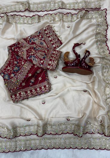 Space Silk with Beautiful Sequence and Zari embroidery work Saree