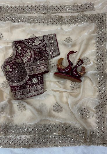 NEW SUPERHIT TRENDING READY TO WEAR SAREE WITH FULLY EMBROIDERED STYLIST BLOUSE ON CHINON FABRIC