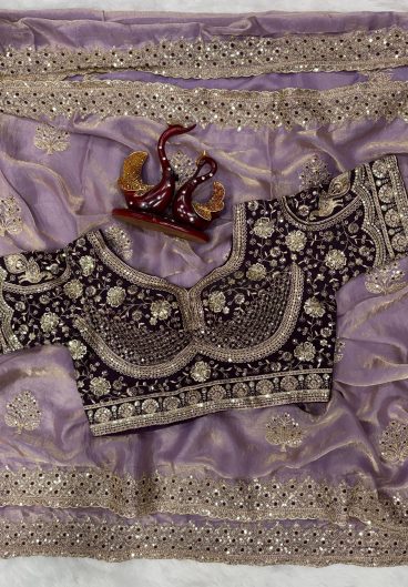 DESIGNER WEAR LAHENGA SAREE WITH LONG BLOUSE AND HEAVY EMBROIDERY WORK
