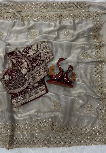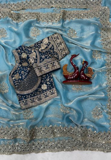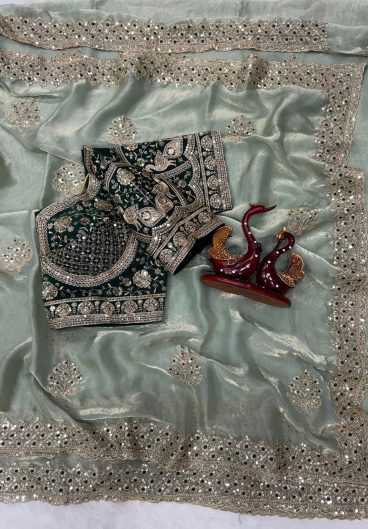 Premium Chinon Silk With Beautiful Print And With Beautiful Real Mirror Work Saree