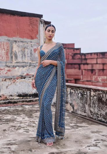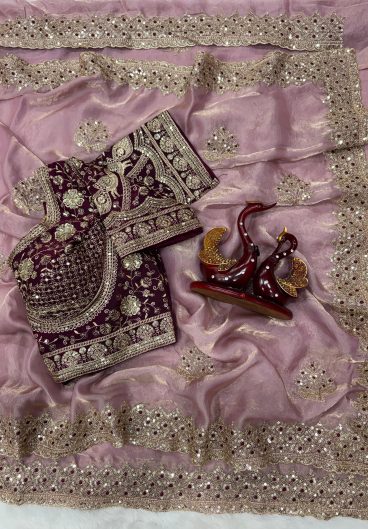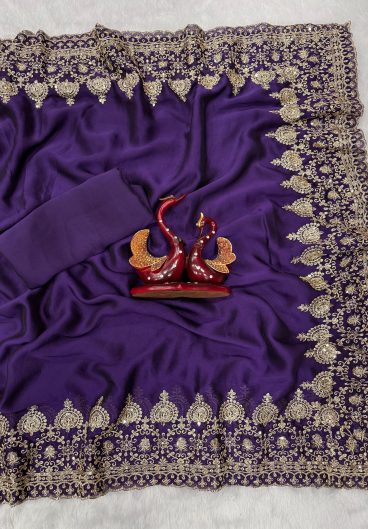 Star Georgette Padding Saree With Embroidery & Sequence Work With Scalloped Cutwork Border