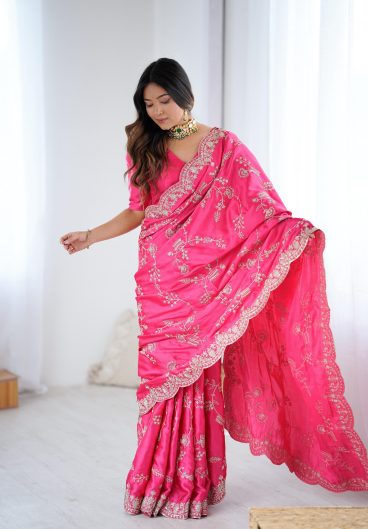 Soft Frendy Satin Fabric with Sequence and Zari Embroidery Work Beautiful Saree