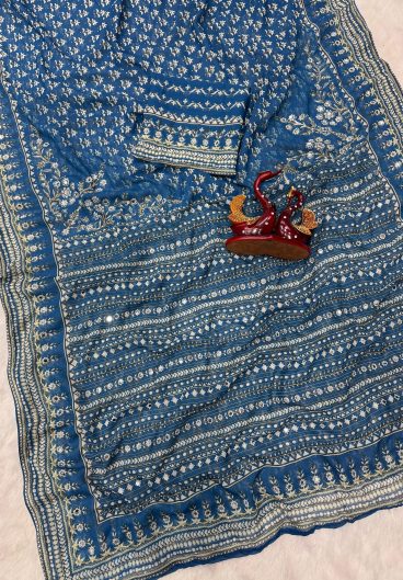 Soft Fox Georgette with Beautiful katdana and real mirror work Saree