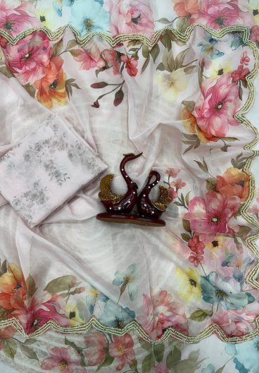 Soft Tebby Silk with Beautiful floral print with beads and katdana handwork Saree
