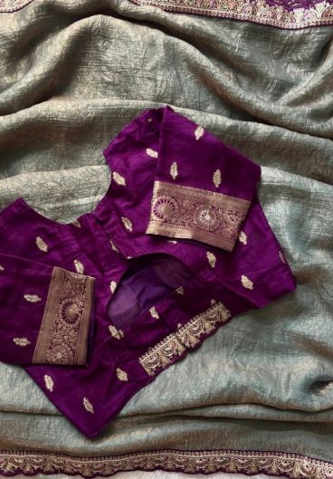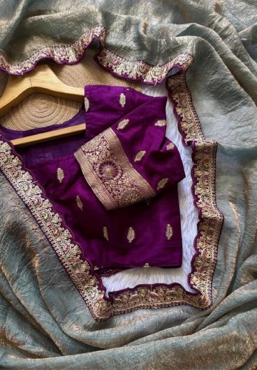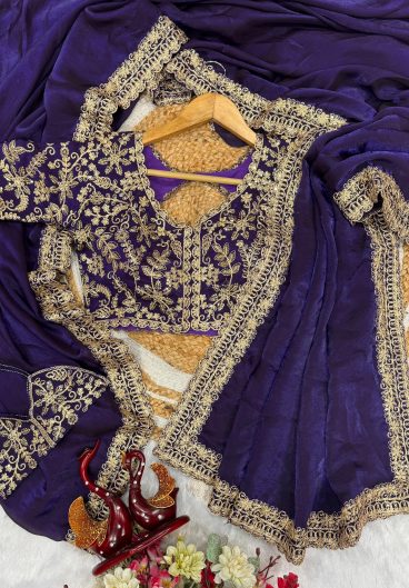 9000 Velvet with Beautiful Embroidered Lavender Border of 5mm Sequins with Jari dori work & Fancy Glass pipe lace Saree