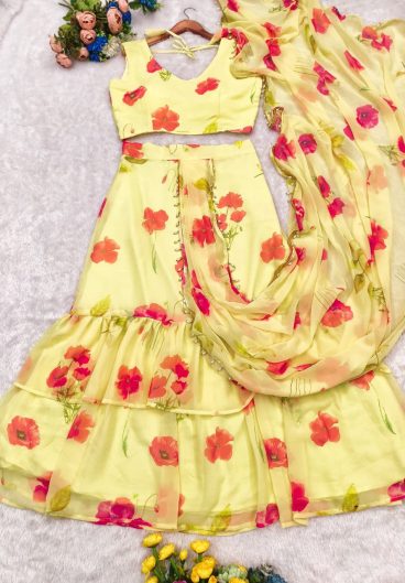 Beautiful Soft Georgette with Digital Print Lahenga Saree Style