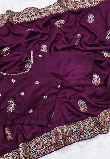Premium Vichitra Silk With Heavy Embroidery Threads & Zari Work Saree