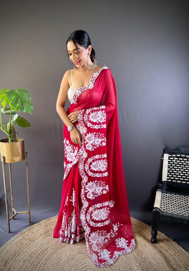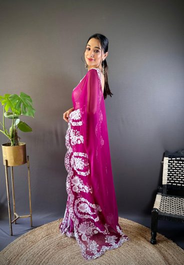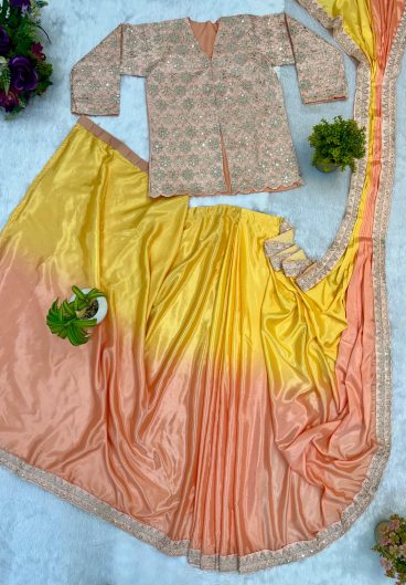 NEW SUPERHIT TRENDING INDO-WESTERN READY TO WEAR SAREE WITH FULLY EMBROIDERED KOTI ON CHINON FABRIC WITH STITCH BLOUSE