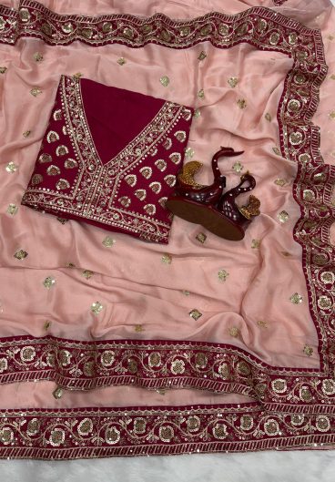Soft space silk with Sequence and Dori Embroidery Work border Saree