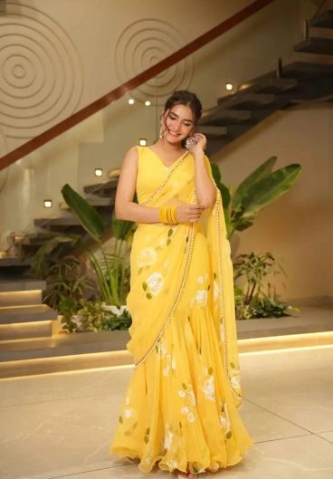 Beautiful Soft Georgette with Digital Print Trending Ruffle Lahenga Saree