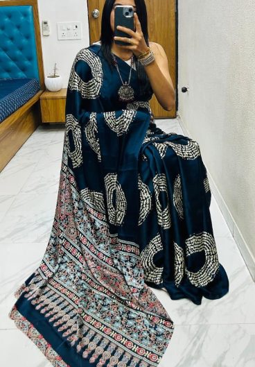 Soft Tebby Silk with Beautiful print with katdana and pearls handwork Saree