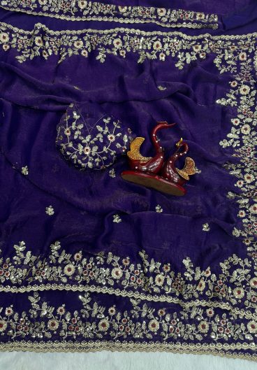Moss silk with Beautiful Sequence and Zari work Embroidery with velvet lace border Saree